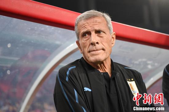 乌拉圭老帅塔巴雷兹在比赛中。 俞靖 摄