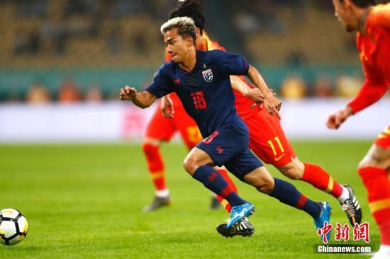 颂克拉辛(蓝)已经成为泰国队进攻线上最犀利的尖刀。中新社记者 富田 摄