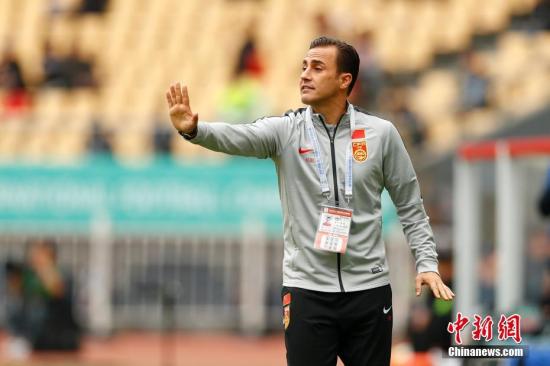 3月25日,中国国家集训队主教练卡纳瓦罗在场边指挥。当日,在广西南宁举行的2019年中国杯国际足球锦标赛季军争夺战中,中国国家男子足球集训队(红)以0比1不敌乌兹别克斯坦队。中新社记者 富田 摄