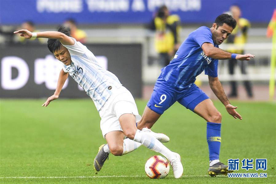 4月21日,中超联赛第六轮江苏苏宁易购队主场迎战广州富力队。开场仅3分钟,主场作战的苏宁就取得了梦幻开局,埃德尔接吴曦头球后蹭轻松破门,为主队取得领先。第13分钟,富力开出角球,无人盯防的托西奇头球破门,为富力扳平比分。此后的比赛完全落入了苏宁的节奏。第20分钟,特谢拉突破至禁区弧顶,一脚射门再度帮助主队领先。仅仅6分钟后,又是特谢拉凭借个人能力建功,他接后场长传球杀入禁区,在多名富力球员的防守下一脚射门打进球门远角,苏宁3比1领先。此后苏宁还有扩大领先的机会,可惜张凌峰晃过富力门将程月磊后的射门偏出。富力在半场结束前也创造了一些机会,但未能改写比分,主队3比1领先结束上半场。 易边再战,富力大举进攻,但并不能制造多少威胁,倒是苏宁在第65分钟再度取得进球,埃德尔接谢鹏飞传球再度破门,比分来到4比1。第85分钟,富力用U23门将韩佳奇换下程月磊,但刚刚登场的韩佳奇随即出现黄油手,第89分钟谢鹏飞禁区外一脚远射,韩佳奇失误送大礼,只能目送皮球入网,比分也最终定格为5比1,苏宁取得了新赛季主场三连胜。 图为江苏苏宁易购队球员埃德尔(右)在比赛中与对手拼抢。 新华社记者李博摄
