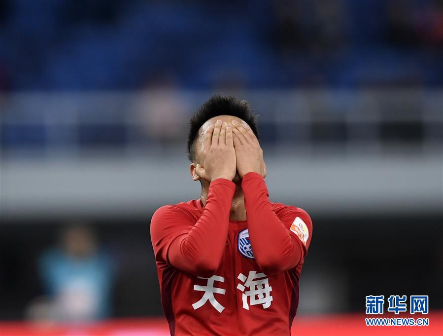 4月19日,中超联赛第六轮天津天海主场迎战上海上港。赛季前几轮,处于托管中的天海连续输球,尤其是球员的精神状态受到一定质疑。天海主教练沈祥福也多次公开呼吁,希望队员能拿出职业球员的态度和精神来比赛。此役主场逼平卫冕冠军后,沈祥福不仅对结果比较满意,他特别表扬了球员的斗志和精神状态,认为大家“踢得非常努力”。 双线作战的上港在这场比赛中并未如赛前宣称的一样轮换阵容,奥斯卡、胡尔克、埃尔克森三名外援和其他主力悉数首发上场,但上港的控制力和攻击性并没有比对手强多少,倒是天海队在中前场祭出王永珀、阿兰、雷纳迪尼奥、杨旭等,多次打出极具威胁的反击。 天海一度率先取得进球,但阿兰在第8分钟的这粒进球被判越位在先,进球无效。下半场,天海差点两次敲开上港的大门,但一次打中门柱,一次打中横梁。而上海上港全场的射门机会不多,最有威胁的一次进攻在第81分钟,胡尔克在右路带球连续甩开多人,上港在禁区形成以少打多局面,但埃尔克森最后的射门打高了。 最终,天津天海击碎了卫冕冠军上海上港全取三分的梦想,在主场与对手战成0比0,各取1分。 图为天津天海队球员温家宝射门未进后情绪低落。 新华社记者岳月伟摄