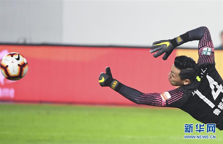 4月19日,中超联赛第6轮广州恒大主场迎战山东鲁能。上一轮两队均未能取胜,而双方下周都将出战亚冠,因此都希望拿到胜利,为接下来的赛程积累信心。对于恒大来说,在天河体育场他们从未输给过鲁能,占据绝对心理优势。但保利尼奥的停赛,给了鲁能机会。 本场比赛,恒大加强了回撤的深度以保护后防。而在进攻端,仅靠塔利斯卡一人的火力输出,球队仍占据一定优势。第18分钟,广州恒大开出角球,黄博文左路传中,塔利斯卡门前头槌入网,帮恒大1比0领先。 第43分钟,鲁能赢得前场任意球,佩莱接蒿俊闵直传,前插头球攻门得手。边裁示意佩莱越位在先,主裁判马日奇在观看VAR后判定进球有效。半场结束时,双方战成1比1平。 易边再战,于汉超换下郑智,加强了恒大前插的速度。但鲁能门将王大雷做出多次扑救,力保城门不失。补时最后阶段,杨立瑜为广州恒大赢得前场任意球,塔利斯卡左脚射门直接命中,帮助恒大2比1战胜对手。 图为山东鲁能泰山队守门员王大雷在比赛中扑救。 新华社记者邓华摄