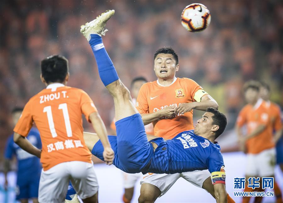 4月21日,中超联赛第六轮最后一场比赛武汉卓尔主场迎战上海申花。作为本赛季升班马,武汉卓尔上轮联赛客场挑战上海上港,最后时刻遭到绝杀,主教练李铁也因情急之下与球童争执,被出示红牌,本轮无缘现场指挥。上轮武汉卓尔主场因现场草坪质量不佳,与河南建业的比赛被迫延后。经过修复,卓尔主场五环体育中心草坪全部“复绿”,达到比赛标准。 开场后双方都屯兵中场,力图稳固中场再寻找机会。第17分钟,主队率先打破场上僵局。卓尔队长传到禁区,外援巴普蒂斯唐底线回敲,U23球员江敏文低射破门。申花队在14分钟后扳平比分。前五轮进五球的伊哈洛接莫雷诺摆渡,门前抢点破门。 下半场易边再战。比赛第77分钟,卓尔队禁区外远射,球打在防守队员身上落在替补上场的U23球员江子磊脚下,一脚低射破门。然而裁判看录像后判定江子磊接球时越位,进球无效。此后双方门前都没有太多机会,最终双方1比1握手言和。 图为上海申花队球员莫雷诺(中)在比赛中倒钩射门。 新华社记者肖艺九摄