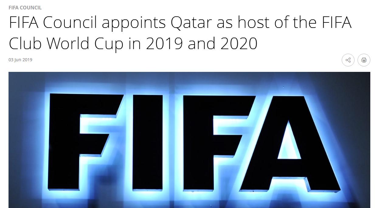 FIFA决定卡塔尔获得2019、2020年两届世俱杯举办权。