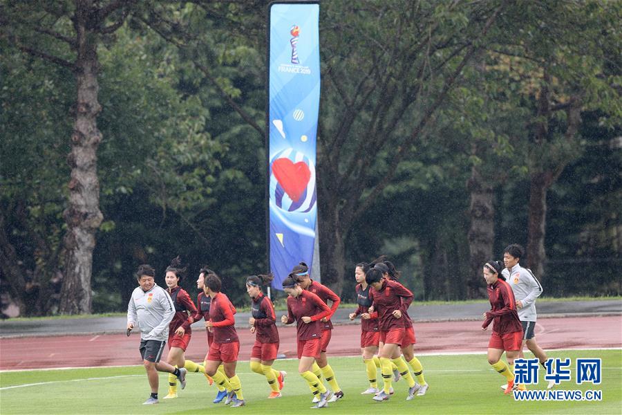 6月19日,中国队球员在训练前热身。 当日,中国女足队员在法国勒阿弗尔训练,备战2019年国际足联女足世界杯16强赛。 新华社记者徐子鉴摄