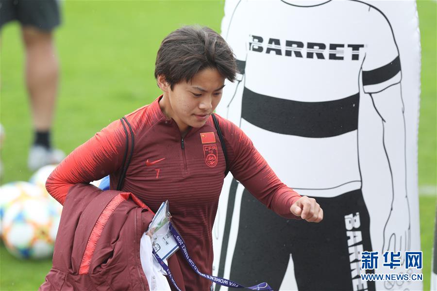 6月19日,中国队球员王霜在训练前。 当日,中国女足队员在法国勒阿弗尔训练,备战2019年国际足联女足世界杯16强赛。 新华社记者徐子鉴摄