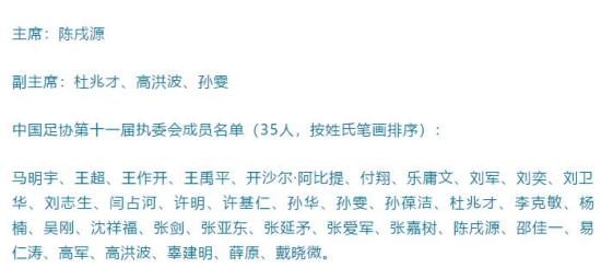 足协新一届领导班子