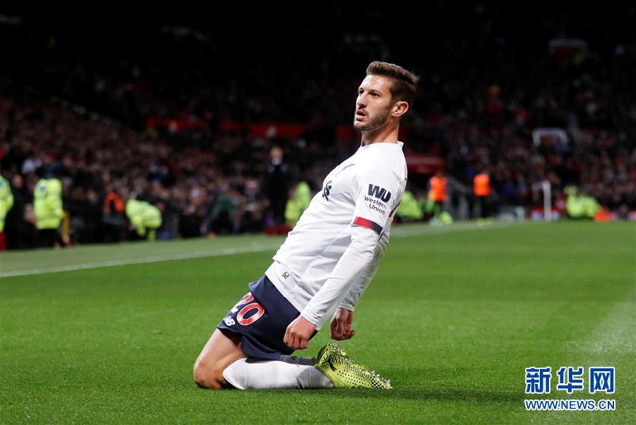 10月20日,利物浦队球员拉拉纳在进球后庆祝。 当日,在2019-2020赛季英超联赛第九轮比赛中,曼联队主场以1比1战平利物浦队。 新华社/路透
