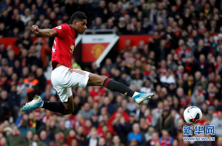 10月20日,曼联队球员拉什福德在比赛中射门得分。 当日,在2019-2020赛季英超联赛第九轮比赛中,曼联队主场以1比1战平利物浦队。 新华社/路透