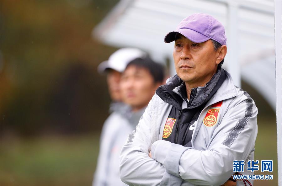 10月24日,中国女足主教练贾秀全观察队员训练。 近期,中国国家女子足球队在香河国家足球训练基地进行第二阶段集训,备战11月在重庆举行的永川四国赛,以及明年2月份开始的东京奥运会预选赛。 新华社记者 丁旭 摄