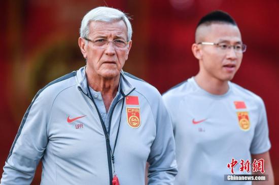 3日,中国国家男子足球队为备战2022年卡塔尔世界杯亚洲区预选赛预赛阶段(四十强赛)的比赛,在广州进行集训。图为中国国家男子足球队主教练里皮(左)。中新社记者 陈骥旻 摄
