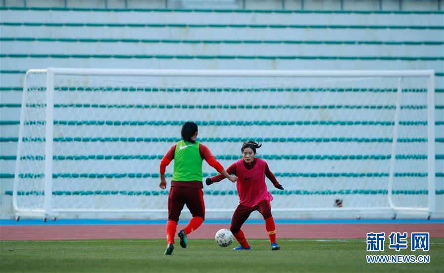 12月9日,中国女足球员王莹(右)在训练中。 当日,中国女足在韩国釜山进行训练,备战2019年东亚足球锦标赛,中国女足将于12月10日首战对阵韩国女足。 新华社记者王婧嫱摄