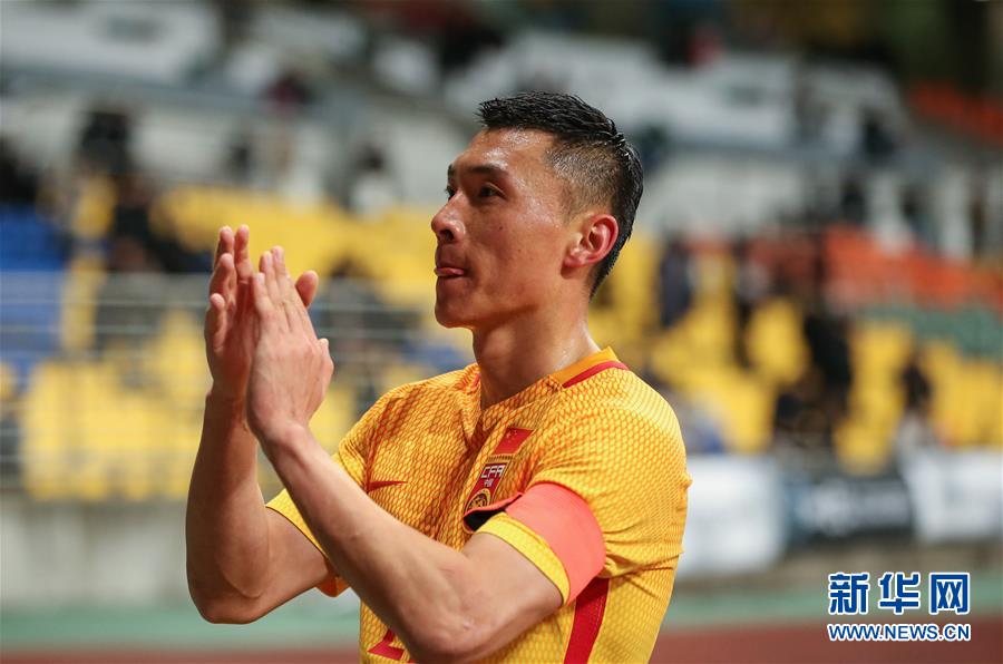 12月15日,中国国家男足选拔队球员于大宝在比赛后向现场球迷致意。 当日,在韩国釜山举行的2019东亚杯男足比赛中,中国国家男足选拔队以0比1不敌韩国队。 新华社记者王婧嫱摄