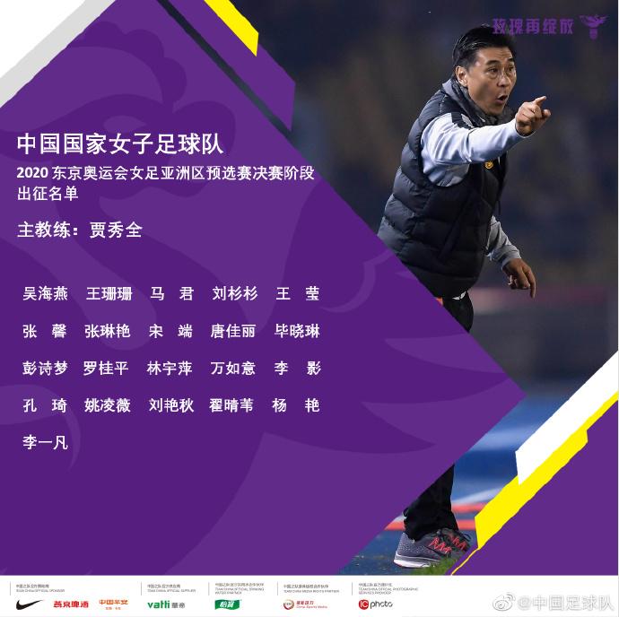 东京奥运会女足亚洲区预选赛决赛阶段中国国家女子足球队出征名单。 图片来源:中国足球队官微