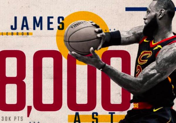 詹姆斯也就此达成了个人生涯第8000次助攻的里程碑,成为NBA历史上首位达到得分30000分、篮板8000个+8000次助攻的球员。