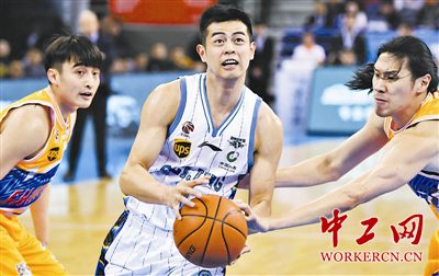 北京队主场95比104负于上海队,图为方硕上篮。工人日报-中工网记者 许之丰 摄