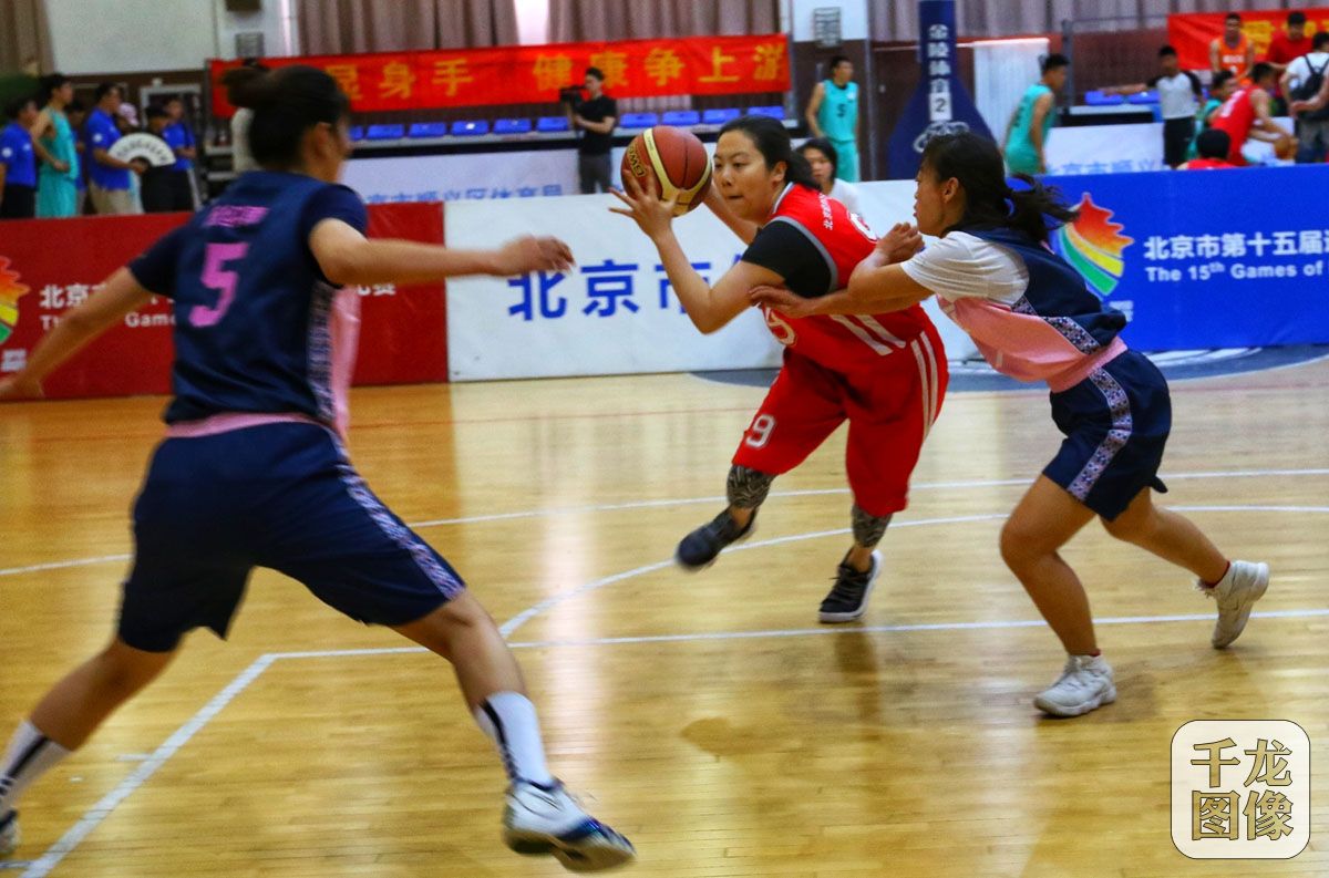 6月24日,北京市第十五届运动会群众项目三人制篮球比赛在顺义区第九中学篮球馆举行。本次比赛北京市15个区、亦庄开发区及燕山地区的26支代表队,共210名运动员、教练员和领队及30余名裁判员参加。图为比赛精彩瞬间。千龙网发 大胡摄