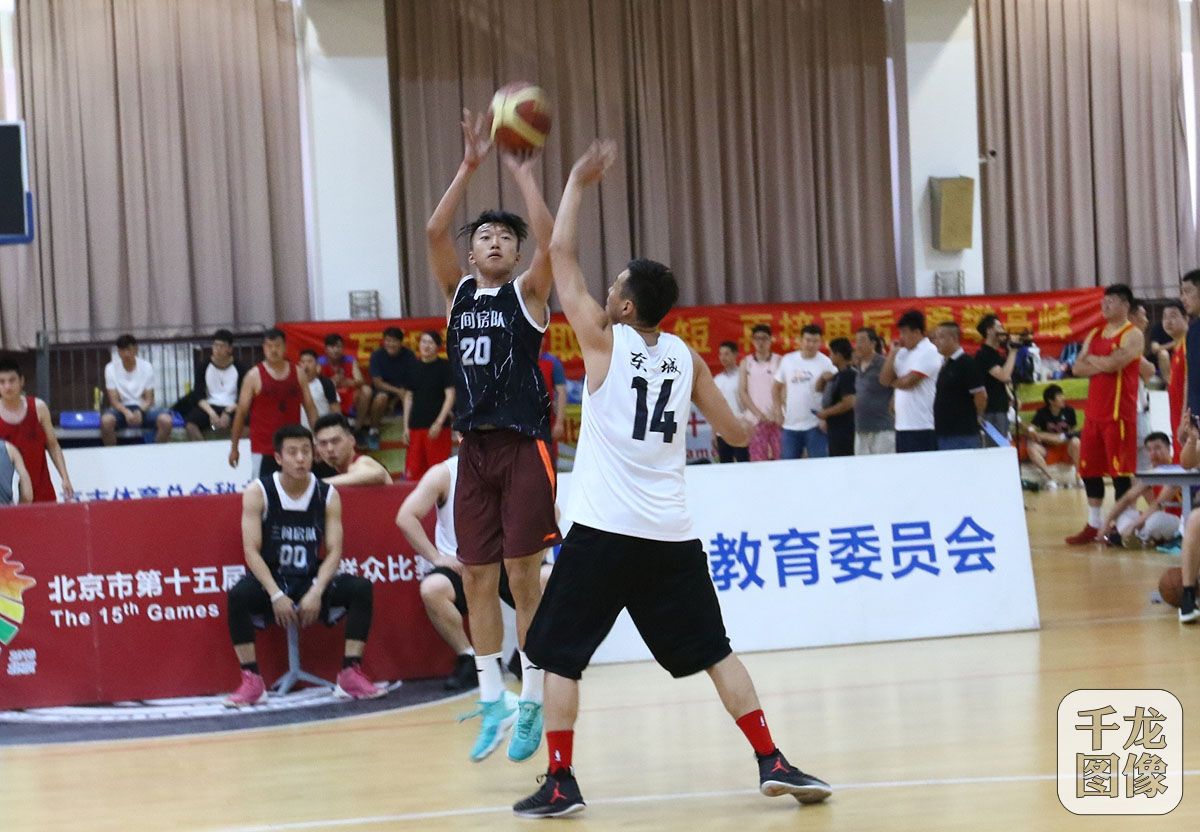 6月24日,北京市第十五届运动会群众项目三人制篮球比赛在顺义区第九中学篮球馆举行。本次比赛北京市15个区、亦庄开发区及燕山地区的26支代表队,共210名运动员、教练员和领队及30余名裁判员参加。图为比赛精彩瞬间。千龙网发 大胡摄