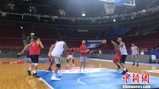 约旦男篮于16日下午来到凯迪拉克中心场地进行赛前热身 马元豪 摄