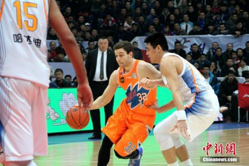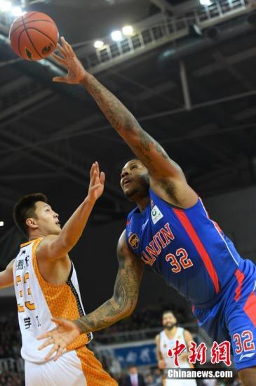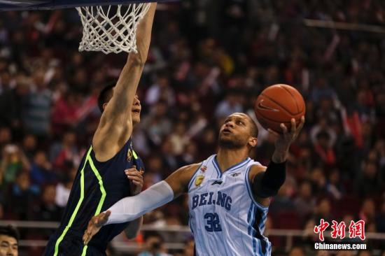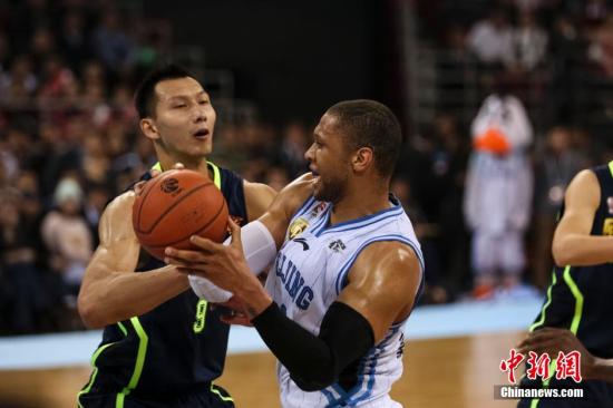 资料图:莫里斯与易建联对抗。中新社发 熊然 摄