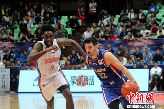 四川队的富兰克林得到全场最高的46分6篮板11次助攻,在主队比分落后时他主动带领球奋力追分。 吕杨 摄