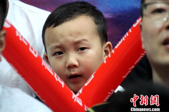 比赛的胶着让场边的小球迷眉头紧锁。 吕杨 摄