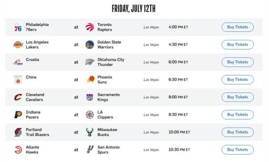 NBA夏季联赛新赛程公布,中国男篮将于北京时间13日凌晨6:30对阵菲尼克斯太阳。 图片来源:NBA官网截图