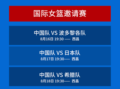 中国女篮将出战国际女篮邀请赛,分别迎战波多黎各队、日本队和希腊队。