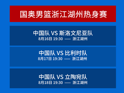 国奥队方面,球队将先后出战浙江湖州热身赛和八国男篮争霸赛,迎战斯洛文尼亚队、比利时队、立陶宛队和多米尼加队。