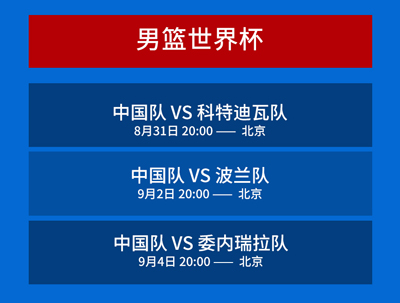 男篮方面,球队将于8月23日和8月25日先后与巴西举行热身赛,这是男篮世界杯前的最后一阶段热身赛,8月31号,男篮世界杯将正式打响,中国男篮将在首场比赛中迎战科特迪瓦队。