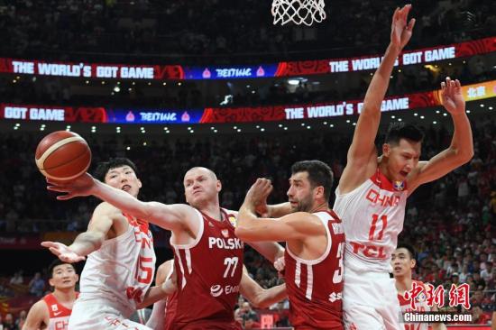 9月2日,双方队员在比赛中争抢。当日,2019男篮世界杯A组第二轮在北京举行,中国队以76比79负波兰队。中新社记者 崔楠 摄