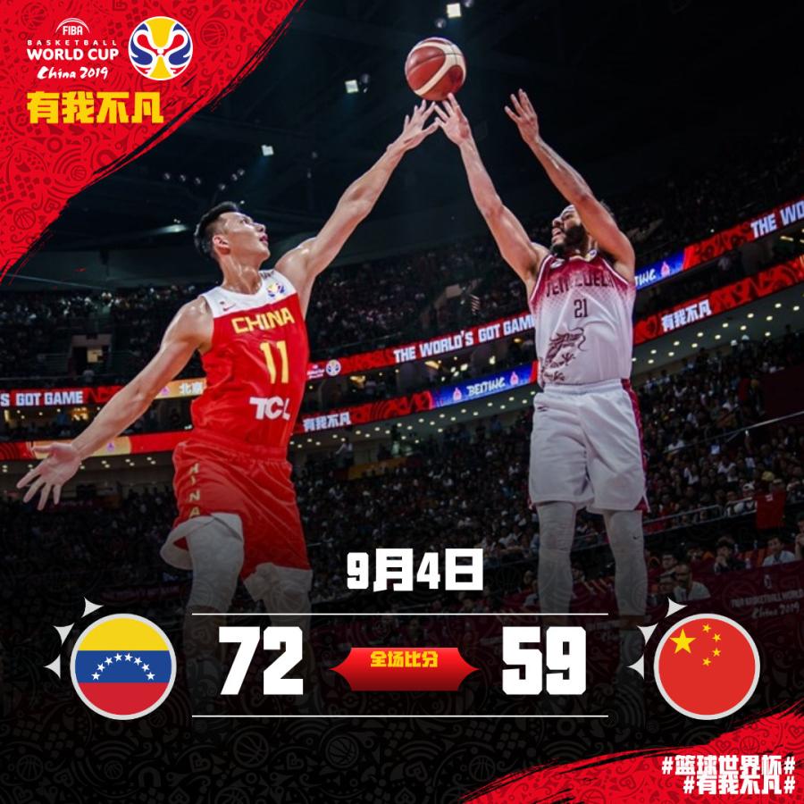 中国男篮不敌委内瑞拉,无缘世界杯16强。 图片来源:FIBA篮球世界杯官方微博