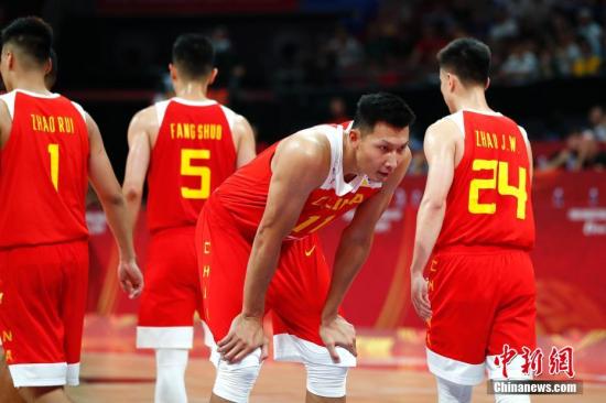 9月4日,中国球员易建联(右二)在罚球线等待罚球。 中新社记者 富田 摄