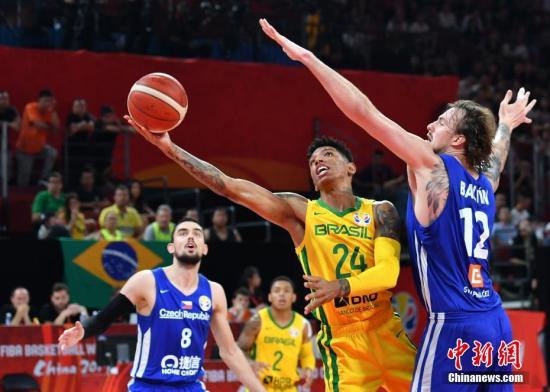 图为巴西队24号球员D.LOUZADA (洛萨达)篮下强攻。 中新社记者 陈文 摄
