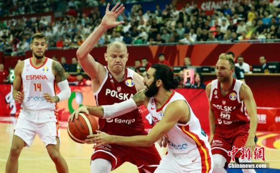 9月10日晚,在上海举行的2019年国际篮联篮球世界杯四分之一决赛中,西班牙队以90比78战胜波兰队,顺利晋级四强。图为西班牙男篮9号队员里基-卢比奥在比赛中传球。 汤彦俊 摄