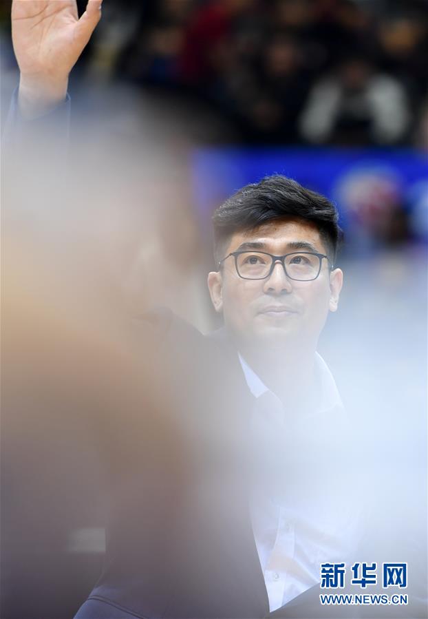 11月3日,徐磊在退役仪式上向球迷挥手致意。 当日,在2019-2020中国男子篮球职业联赛常规赛首轮天津先行者队主场对阵北京首钢队的比赛间隙,天津荣钢先行者篮球俱乐部为前球员徐磊举行退役仪式。 新华社记者李然摄