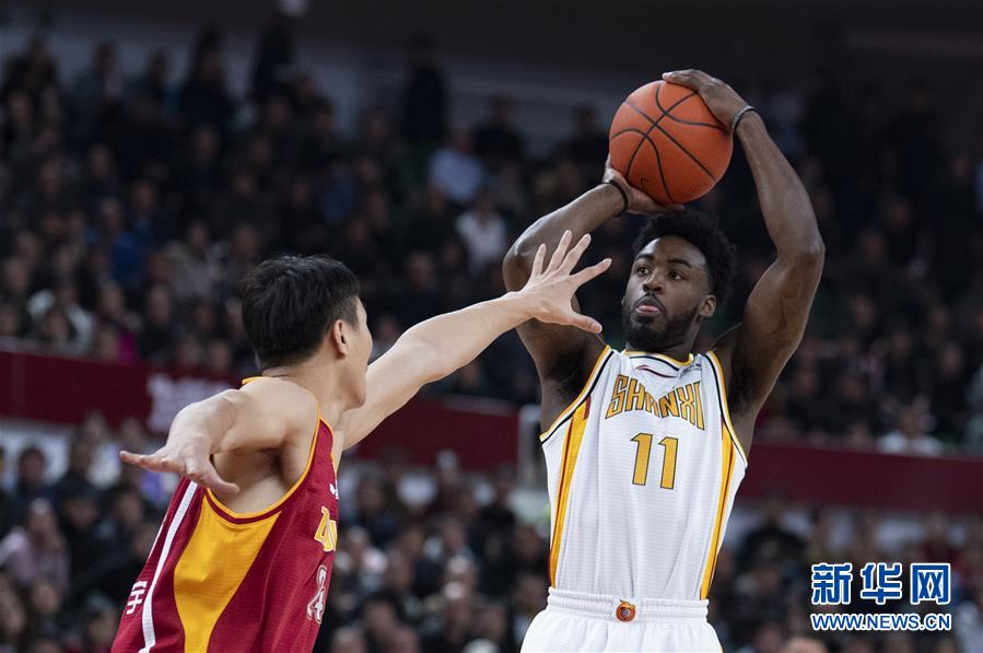 12月18日,山西汾酒股份队球员富兰克林(右)在比赛中投篮。 当日,在2019-2020赛季中国男子篮球职业联赛(CBA)常规赛第18轮比赛中,山西汾酒股份队主场以127比119战胜浙江稠州银行队。 新华社记者杨晨光摄