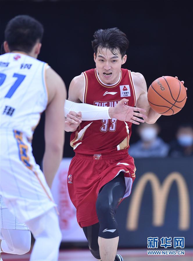 10月20日,浙江稠州金租队球员吴前(右)在比赛中带球突破。 当日,在浙江诸暨举行的2020-2021赛季中国男子篮球职业联赛(CBA)第一阶段第二轮比赛中,浙江稠州金租队以92比75战胜北京首钢队。 新华社记者黄宗治摄