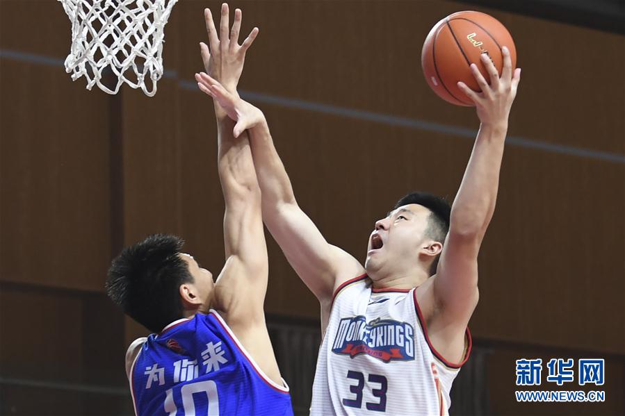 10月21日,南京同曦宙光队球员赵天熠(右)在比赛中上篮。 当日,在浙江诸暨举行的2020-2021赛季中国男子篮球职业联赛(CBA)第一阶段第二轮比赛中,南京同曦宙光队以92比83战胜天津先行者队。 新华社记者 沙达提 摄