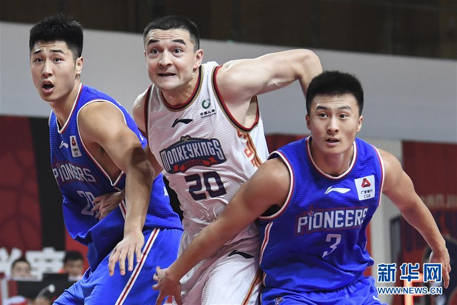 10月21日,南京同曦宙光队球员西热力江(中)在比赛中突破天津先行者球员的防守。 当日,在浙江诸暨举行的2020-2021赛季中国男子篮球职业联赛(CBA)第一阶段第二轮比赛中,南京同曦宙光队以92比83战胜天津先行者队。 新华社记者 沙达提 摄