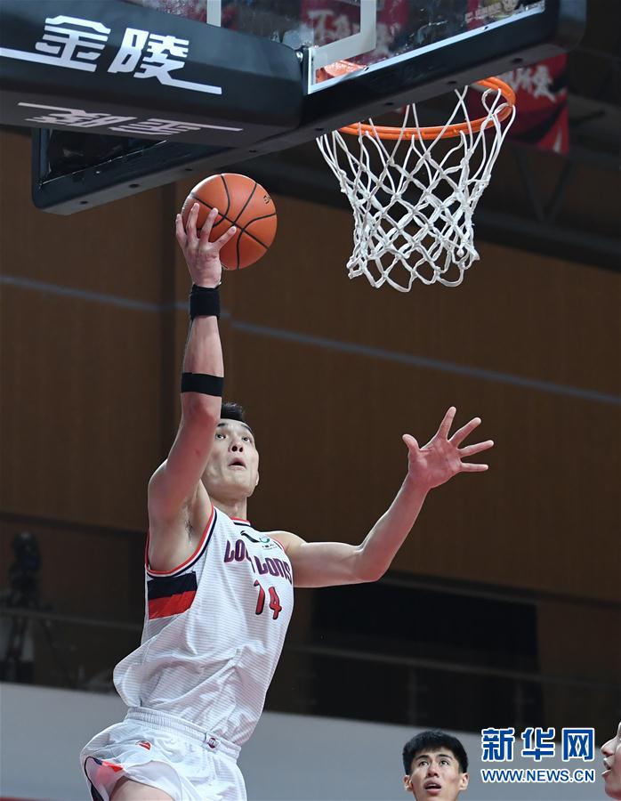10月22日,时代中国广州队球员郭凯在比赛中上篮。 当日,在浙江诸暨举行的2020-2021中国男子篮球职业联赛(CBA)第一阶段比赛中,时代中国广州队以92比73战胜苏州肯帝亚队。 新华社记者 沙达提 摄