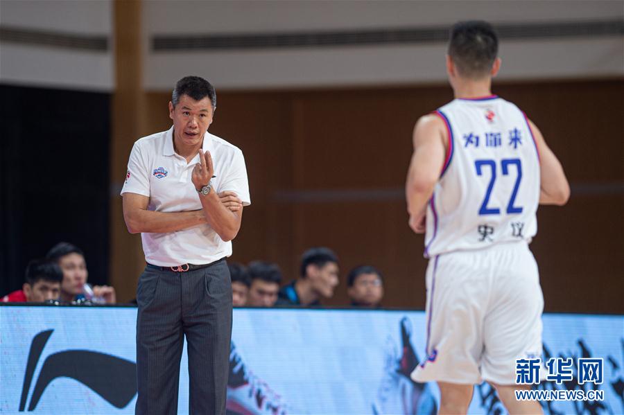 10月30日,天津先行者队主教练刘铁(左)在比赛间隙指导球员史仪。 当日,在浙江诸暨举行的2020-2021赛季中国男子篮球职业联赛(CBA)第一阶段第六轮比赛中,天津先行者队以95比108不敌时代中国广州队。 新华社发(江汉摄)