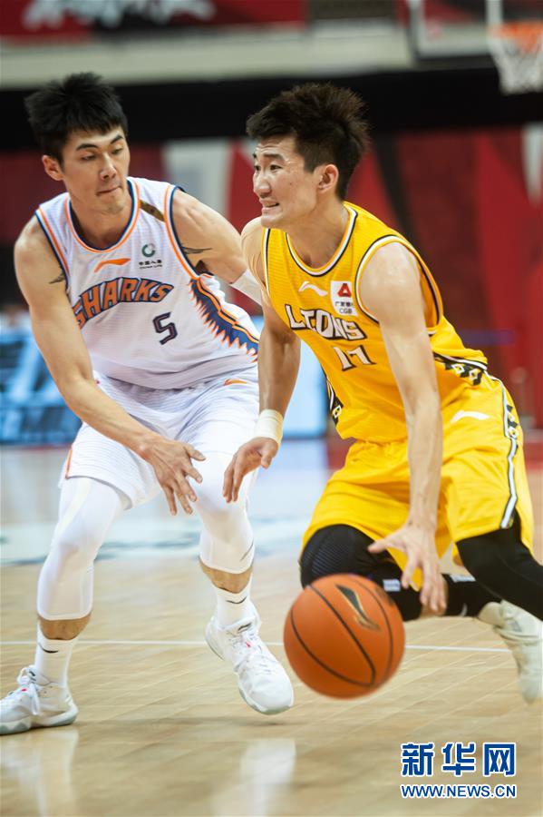 11月6日,浙江广厦控股队球员孙铭徽(右)在比赛中突破上海久事队球员刘铮的防守。 当日,在浙江诸暨举行的2020-2021赛季中国男子篮球职业联赛(CBA)第一阶段第九轮比赛中,浙江广厦控股队以102比98战胜上海久事队。 新华社发(江汉摄)