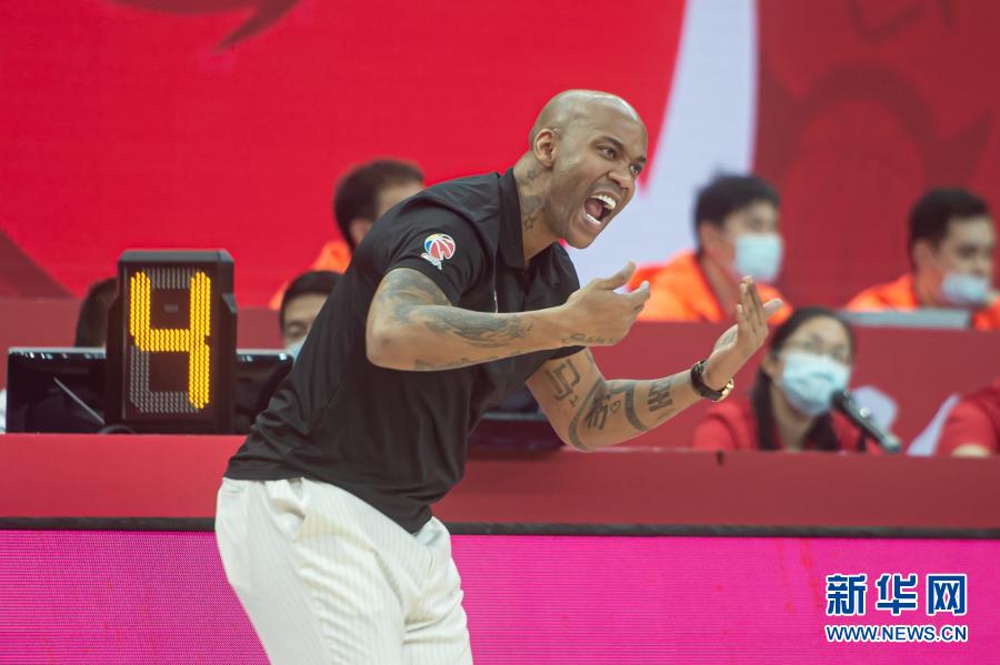 11月14日,北京紫禁勇士队主教练马布里在比赛中指挥。