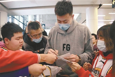 当辽篮的教练队员们推着行李车从机场走出时,早已在门外等候多时的辽宁球迷们立刻喊起了熟悉的口号:“ 一二三四,我爱辽篮!”在诸暨征战一个月后回到家乡,辽篮的球员、教练员们受到热情迎接倍感亲切。