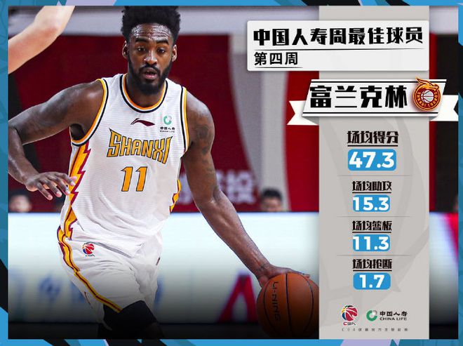 山西球员富兰克林场均上场时间46.0分钟,拿到了场均47.3分15.3助攻11.3篮板1.7抢断的全面数据。