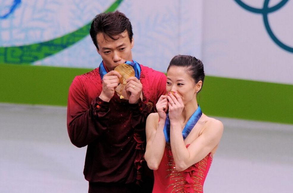 ↑2010年温哥华冬奥会,申雪、赵宏博在花样滑冰双人自由滑比赛中夺冠。