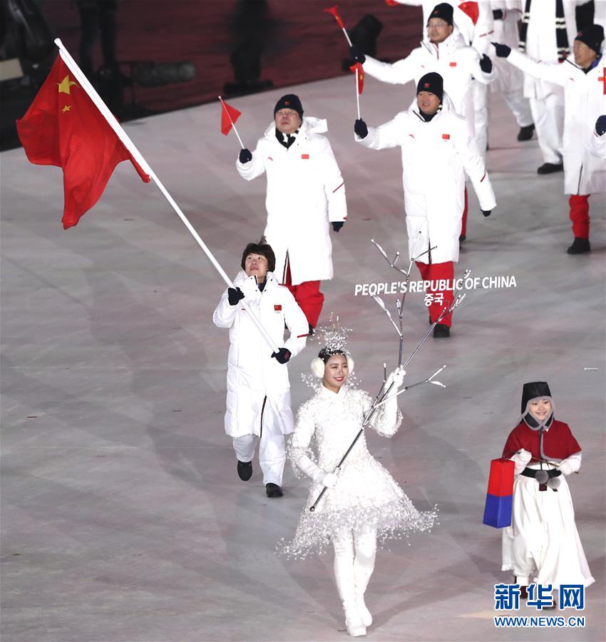2月9日,中国代表团在开幕式上入场。当日,2018年平昌冬奥会开幕式在平昌奥林匹克体育场举行。 新华社记者鞠焕宗摄