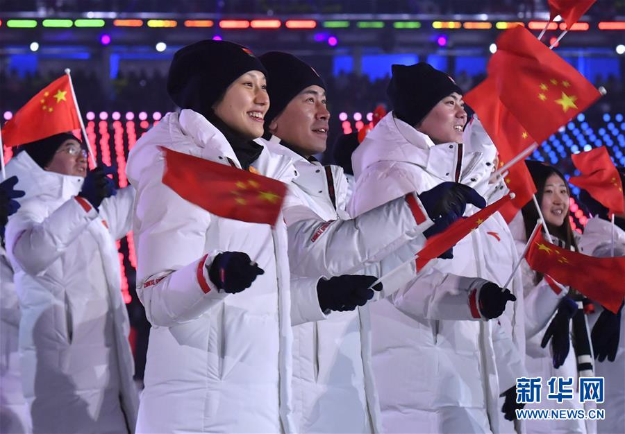 2月9日,中国代表团在开幕式上入场。当日,2018年平昌冬奥会开幕式在平昌奥林匹克体育场举行。 新华社记者鞠焕宗摄