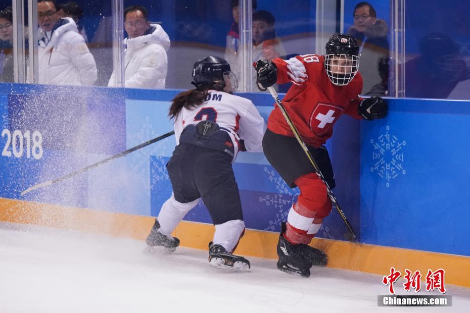2月10日,2018平昌冬奥会女子冰球比赛开战,朝韩女子冰球联队首秀对阵瑞士队。中新社记者 崔楠 摄